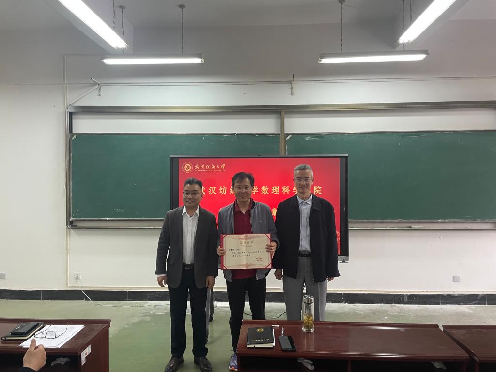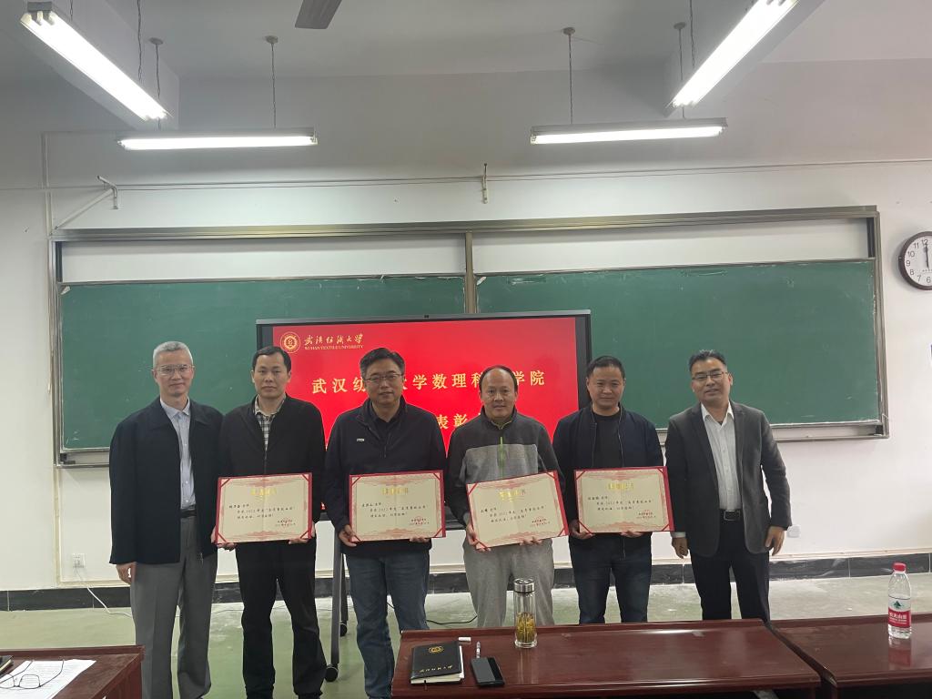 会议授予陈国鹏、仇华海、王洪山、毛耀等4位老师2022年度“高质量就业奖”。授予赵光欣老师2022年度“招生宣传优秀个人”奖。学院党委书记段溢波、院长汪胜祥为获奖老师颁奖。