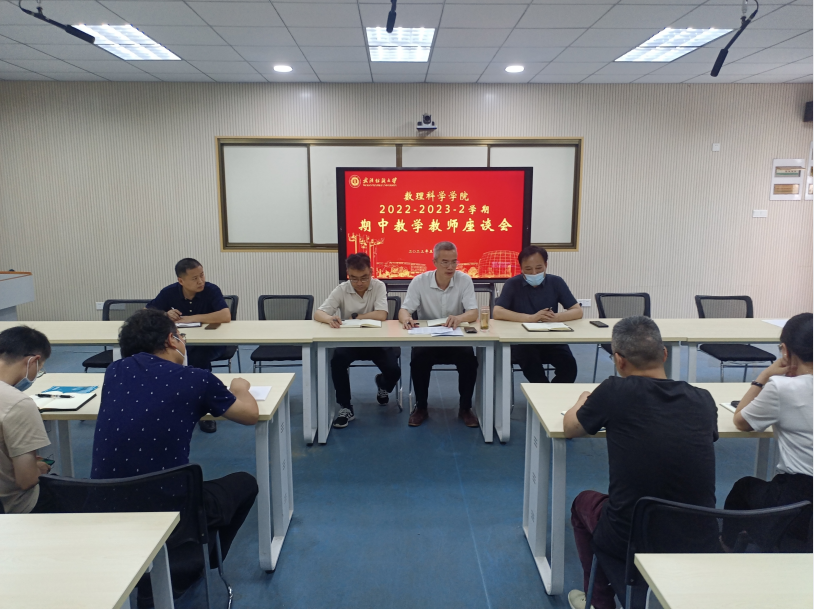 在学校深入开展学习贯彻习近平新时代中国特色社会主义思想主题教育之际,为积极践行美好纺大建设,将“为师生办实事”落到实处,全面了解教师对学院教育教学、管理服务等方面的意见和建议,进一步倾听教师的心声,促进我院教师快速成长,提升业务水平和专业素养,进一步增强学院教学质量和管理服务工作的针对性和实效性,促进学院全面发展,我院于5月18日召开了2022-2023学年第二学期期中教学教师座谈会。学院党委书记段溢波、院长汪胜祥、副院长许明耀、副书记陈国鹏、各系(中心)主任及教授、骨干教师、青年教师等19位教师代表参加了座谈会,会议由副院长许明耀主持。