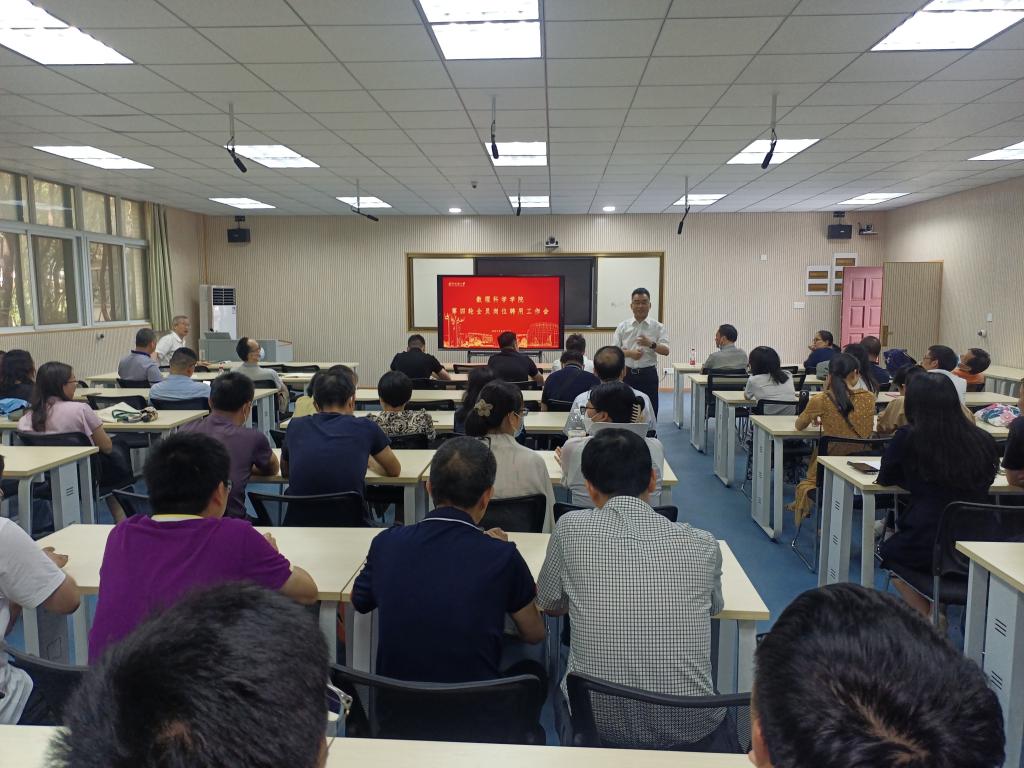 6月14日下午,williamhill英国召开全体教职工大会,布置第四轮全员岗位聘用、主题教育、意识形态、师德师风、安全稳定、纪检监察、民族宗教、平安校园等有关工作,学院党委书记段溢波主持会议。