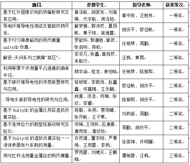 大学生物理实验创新设计大赛旨在展示我省高校物理实验教学改革的成果,不断提高物理实验教学质量,激发大学生对实验物理的兴趣,培养大学生严谨的学习态度、科学的研究方法、综合运用物理知识解决实际问题的能力和进行实验研究的能力,提高学生的创新精神和团队协作意识。(本届大赛总计有来自全省40所本科高校选送的596项作品参加初赛,共163项作品进入决赛。)