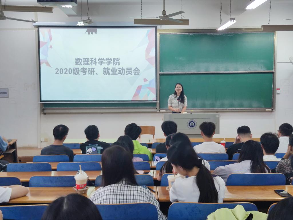 副院长郑仟首先开始考研动员。她通过数学学科的重要性、数学学子毕业去向、威廉概况、师资队伍、学科概况、招生专业目录与政策六个方面,深入浅出,细致详细的向大家讲述了当前严峻的考研形式以及我院考研的相关优势,鼓励大家在最后的时间,继续保持积极向上的劲头,努力进取,瞅准目标发力,争取一战上岸。