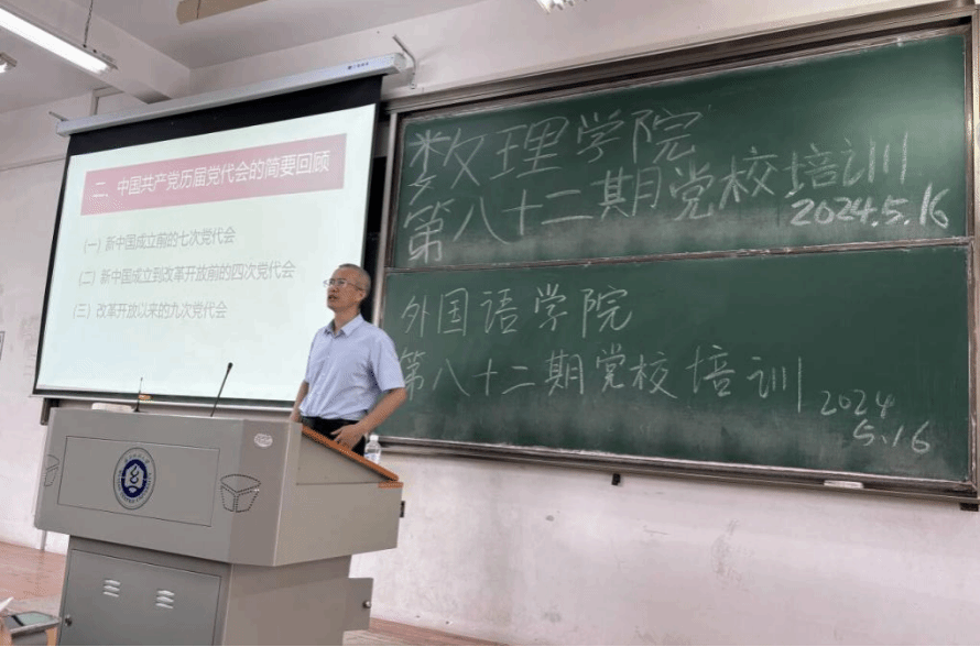 为了加强入党积极分子的理论学习,坚定理念信念,端正入党动机,2024年5月16日下午,williamhill英国党委书记段溢波以“以历届党代会看中国共产党的百年发展壮大”为题,在3教117教室为williamhill英国和外国语学院的入党积极分子讲授党课。