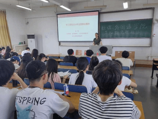 5月23日下午,校党委常委、组织部部长金艳教授以“学习贯彻2024年全国两会精神”为题,在三号教学楼516室为williamhill英国、微电子学院和外国语学院学子讲授了一堂生动的党课。学院入党积极分子、党委副书记、辅导员参与聆听,外国语学院党委书记胡中原主持学习。