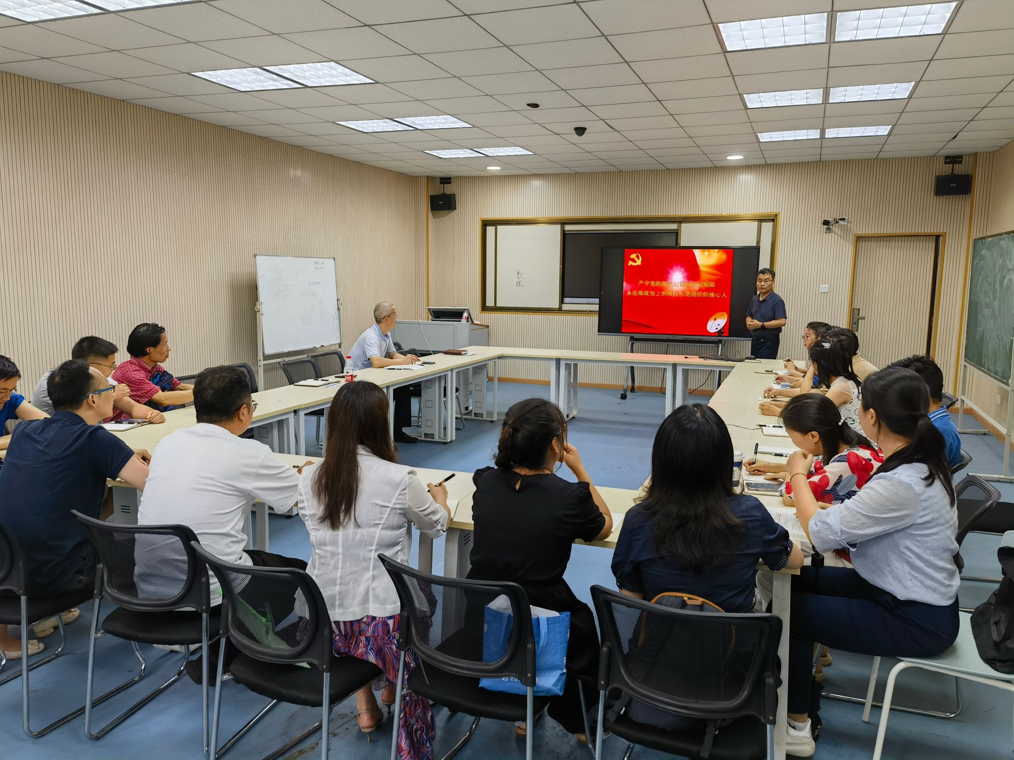 2024年6月20日下午,williamhill英国在崇文楼206室举办举办政治纪律学习专题班暨党委理论学习中心组第六次集体学习。学院党委委员、系(中心、办)主任、党支部书记、党支部委员参加学习。学院院长汪胜祥以《严守党的政治纪律和政治规矩,永远做政治上的明白人、党组织的放心人》为题做辅导报告,学院党委书记段溢波主持学习会。
