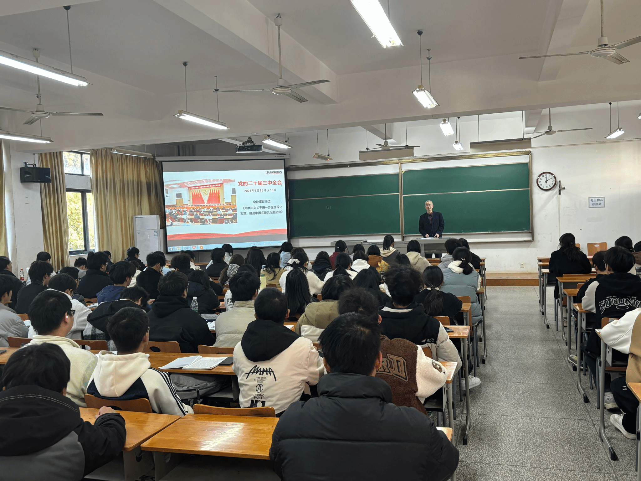 为引导广大青年学生学习领悟党的二十届三中全会精神,11月27日下午,williamhill英国党委书记段溢波以形势政策课宣讲方式,在阳光校区6号教学楼221教室,为学院24级新生开展了党的二十届三中全会精神专题宣讲。