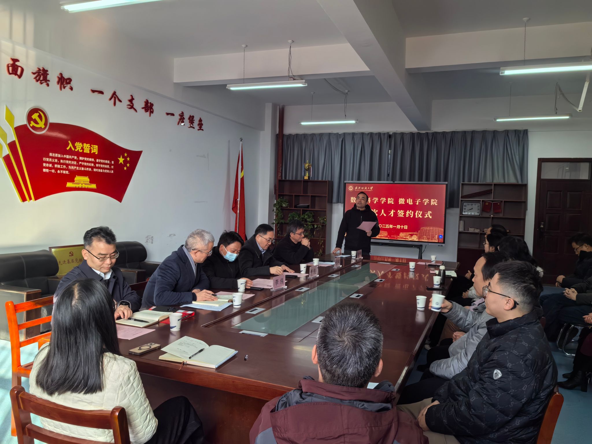 2025年1月10日,学校在崇文楼102室举办高层次人才引进签约仪式,副校长傅欣出席。人事处处长李伟,何云斌教授及其团队,williamhill英国、微电子学院班子成员、系(中心、办)主任、党支部书记、教授委员会主任、教学督导组组长,微电子系全体教师代表与会,微电子学院陈长清教授主持签约仪式。