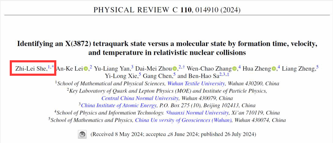 高端论文彰显实力。发表SCI论文60余篇,其中3篇入选ESI高被引论文。汤思宇博士、佘智磊博士先后在国际权威期刊《Phys. Rev. C》发表学术论文,张难高博士在国际著名数学期刊《SIAM Journal on Mathematical Analysis》发表学术论文。