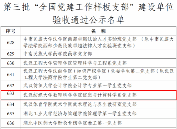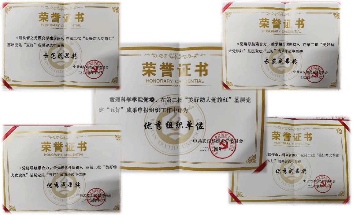 党建导航行稳致远。深入开展党纪学习教育,学习宣传贯彻党的二十届三中全会精神。信息与计算科学系通过教育部第三批全国党建样板支部验收。在学校第二批“美好纺大党旗红”基层党建“五好”成果评选中,获4项单项奖和1项优秀组织奖。