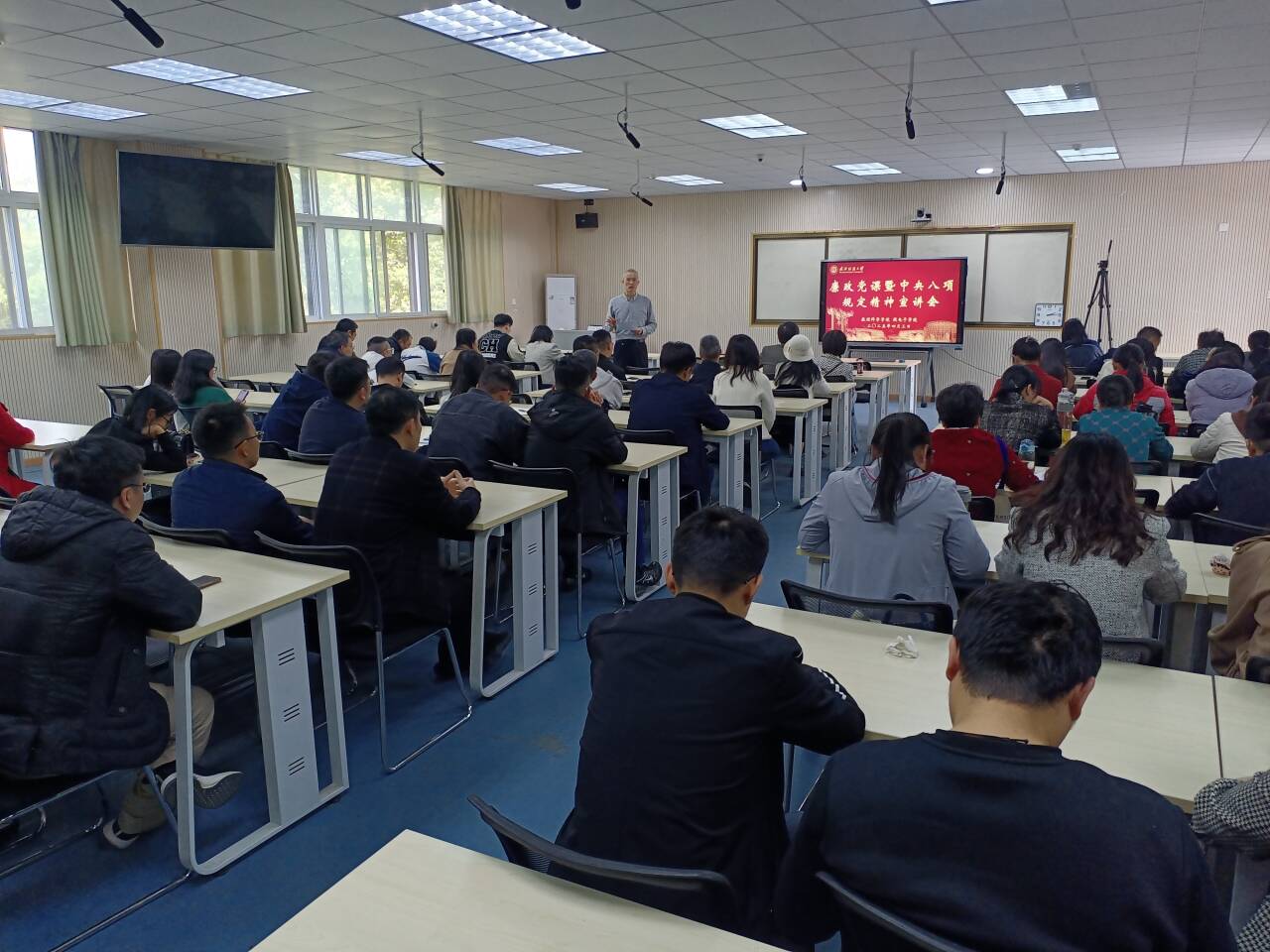 段溢波从三个方面宣讲了中央八项规定精神。其一,中央八项规定是一个切入口和动员令,是长期有效的铁规矩、硬杠杆。是改进作风建设的第一步,作风建设关系到我们党能不能长期执政、履行好执政使命,作风建设永远在路上。其二,正确厘清深入贯彻中央八项规定精神学习教育中的三对关系。即中央八项规定和实施细则的关系、中央八项规定和中央八项规定精神的关系、习近平总书记关于党的纪律建设的重要论述和中央八项规定精神的关系。其三,以“严”、“真”、“实”的作风践行中央八项规定精神。严,即全面从严治党;真,即说真话、办实事;实,即出实效。