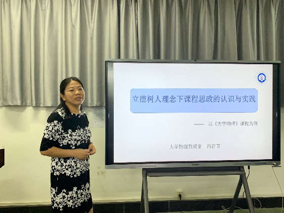 冯存芳博士围绕课程思政,结合大学物理课程,做了题为“立德树人理念下课程思政的认识与实践”的教研报告。报告主要从课程思政之起源、课程思政之思路和课程思政之案例三个方面做了细致的阐述。对于起源问题,党的十八大以来在习近平总书记对立德树人论述的再认识会议上,党中央明确表示高校思想政治工作关系高校培养什么样的人,如何培养人以及为谁培养人这个根本问题,要坚持把立德树人作为中心环节,把思想政治工作贯穿教育教学全过程,实现全程育人、全方位育人,努力开创我国高等教育事业发展的新局面。在思路上,要把握课程思政的基础是课程,关键在于老师,可以采用多种方法将思政引入教学过程中,比如启发式、比较法、讲授法和案例法。最后冯博士列举了一些大学物理教学中的思政案例。本次报告给老师们如何将课程思政引入课堂做了很好的引导,让老师们受益匪浅。