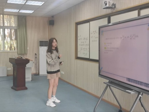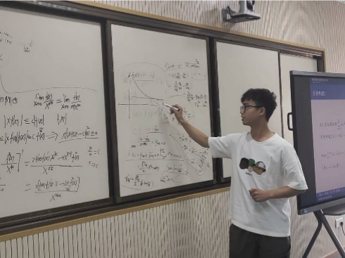 马清奎同学以他自己的备考策略和竞赛之旅为引,鼓励同学积极参加数学竞赛,增强自主学习能力。他现场讲解了两道竞赛题,以此为例展现数学的奥秘。冯柔同学分享了她关于竞赛知识的心得,着重讲解“数列级数在竞赛真题中的应用”,以题代讲,将技巧巧妙地糅杂在解题思路中。胡兴发同学以数学建模竞赛为切入点,解说了他们小组的参赛思路和心得。