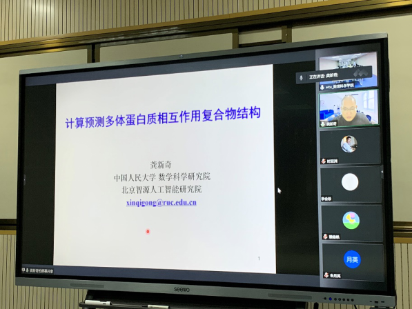 为学习宣传贯彻党的二十大精神,大力促进学科交叉、加强团队合作、提高学术能力、增强学术自信,在学院大力支持下,第231期阳光论坛暨第57期学术沙龙活动于11月11日在williamhill英国206教研室成功举办。本次活动邀请中国人民大学数学威廉英国院龚新奇教授做题为“计算预测多体蛋白质相互作用复合物结构”的线上报告。本次活动由数学与应用数学系主任江健教授主持,副院长郑仟副教授,数学专业的相关老师以及全体研究生同学参加了本次研讨活动。