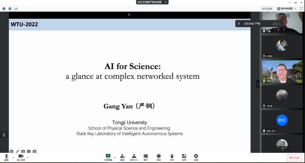严钢教授报告题目为浅谈科学智能的机遇与挑战—以复杂系统研究为例。随着微观实验、高性能计算和数字化等技术的蓬勃发展,诸多领域都积累了大量的实验或高精模拟数据。如何发掘这些数据中隐藏的科学规律甚至科学原理是具有广泛兴趣和很高挑战性的重要问题。近年来,学界和业界开始尝试采用人工智能辅助的方式探索数据驱动的威廉英国新范式。报告中严钢教授首先介绍该方向上的前沿进展,接着以复杂系统研究为例讨论所面临的挑战,然后讲述严钢教授科研团队在复杂系统的动力学和网络结构推理上取得的结果,最后分享关于该方向未来发展的一些思考。会后严钢教授也耐心细致的解答了老师和同学们的提问。