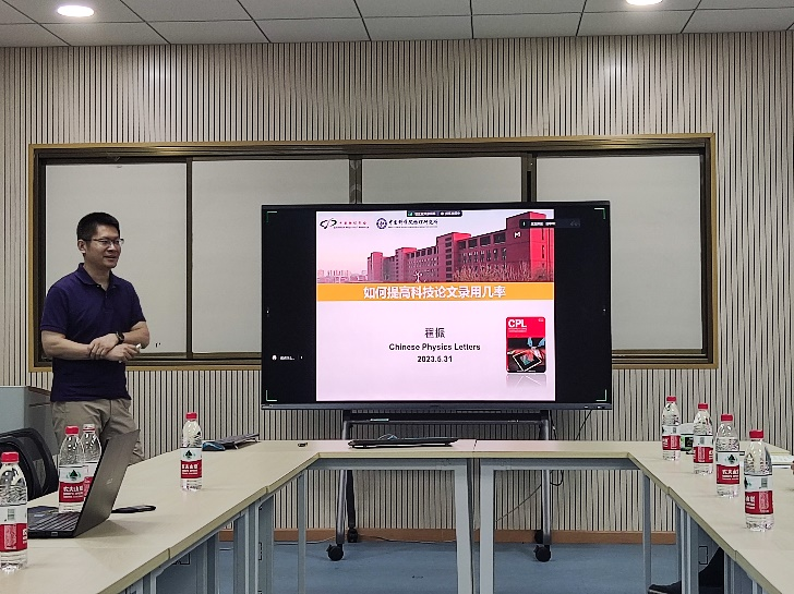 中科院北京物理所、CPL编辑部负责人翟振博士详细介绍了中科院物理所Chinese Physics Letters (CPL),Chinese Physics B (CPB),《物理学报》和《物理》四刊的发展现状和投审稿流程等,并就英文科技论文写作、投稿注意事项、提交论文的录用率和提高论文的曝光度和影响力等内容进行了深入的交流与讨论。