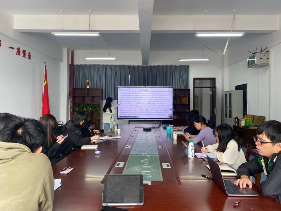 应用数学与交叉威廉英国中心复杂网络团队于2023年10月第4周进行每周小组组会,小组全体成员和各位导师共同参加。在这次组会上,由三名研二学生分别汇报自己的研究进展,然后老师与同学们对汇报内容进行学术探讨,并对存在的问题给出相应的指导和建议。