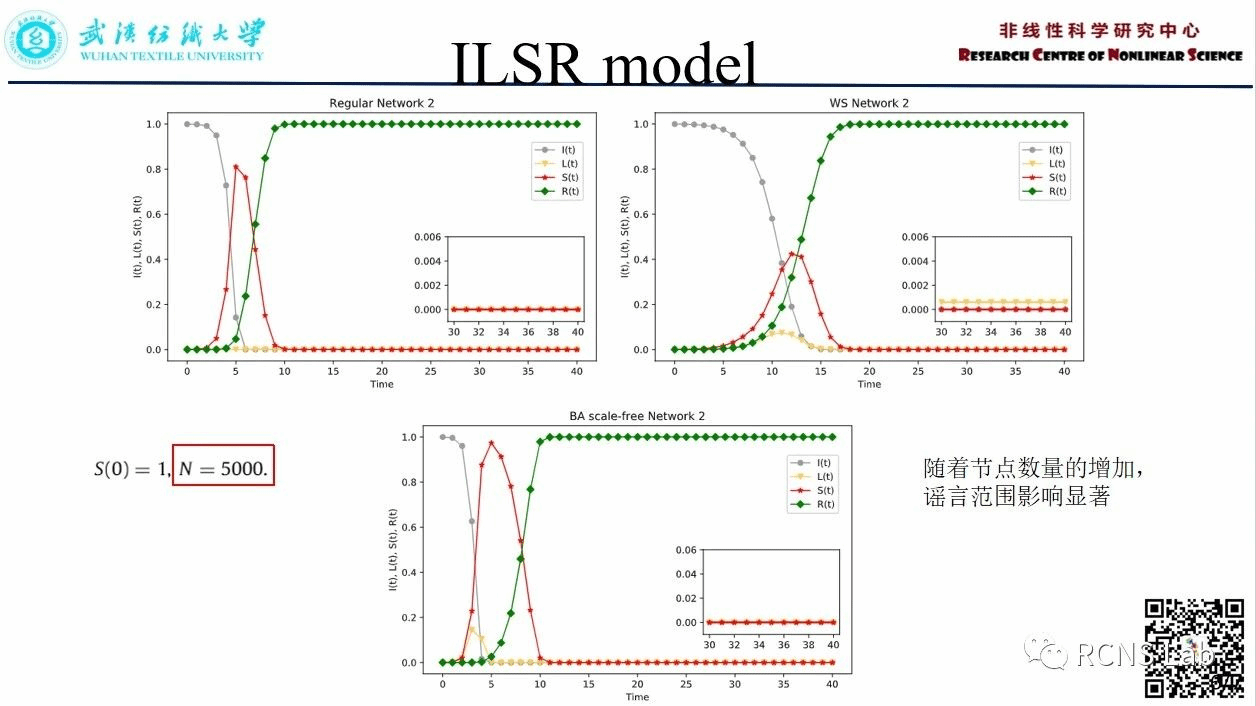 杨凤鸣:本周汇报的是文献《ILSR rumor spreading model with degree in complex network》,本篇文献考虑不同用户在谣言传播中的作用。基于网络中不同节点的程度,为每个节点设计了新的状态转换函数,并提出了新的谣言传播ILSR模型。首先对模型进行分析,计算平衡点和基本再生数,证明模型的合理性。然后在WS网络、BA无标度网络和真实的Facebook网络上进行实验,研究各节点之间随时间的关系以及网络结构对谣言传播的影响,实验结果表明了模型的正确性和有效性。为探索复杂网络中谣言的传播规律、引导和控制谣言的传播提供参考。