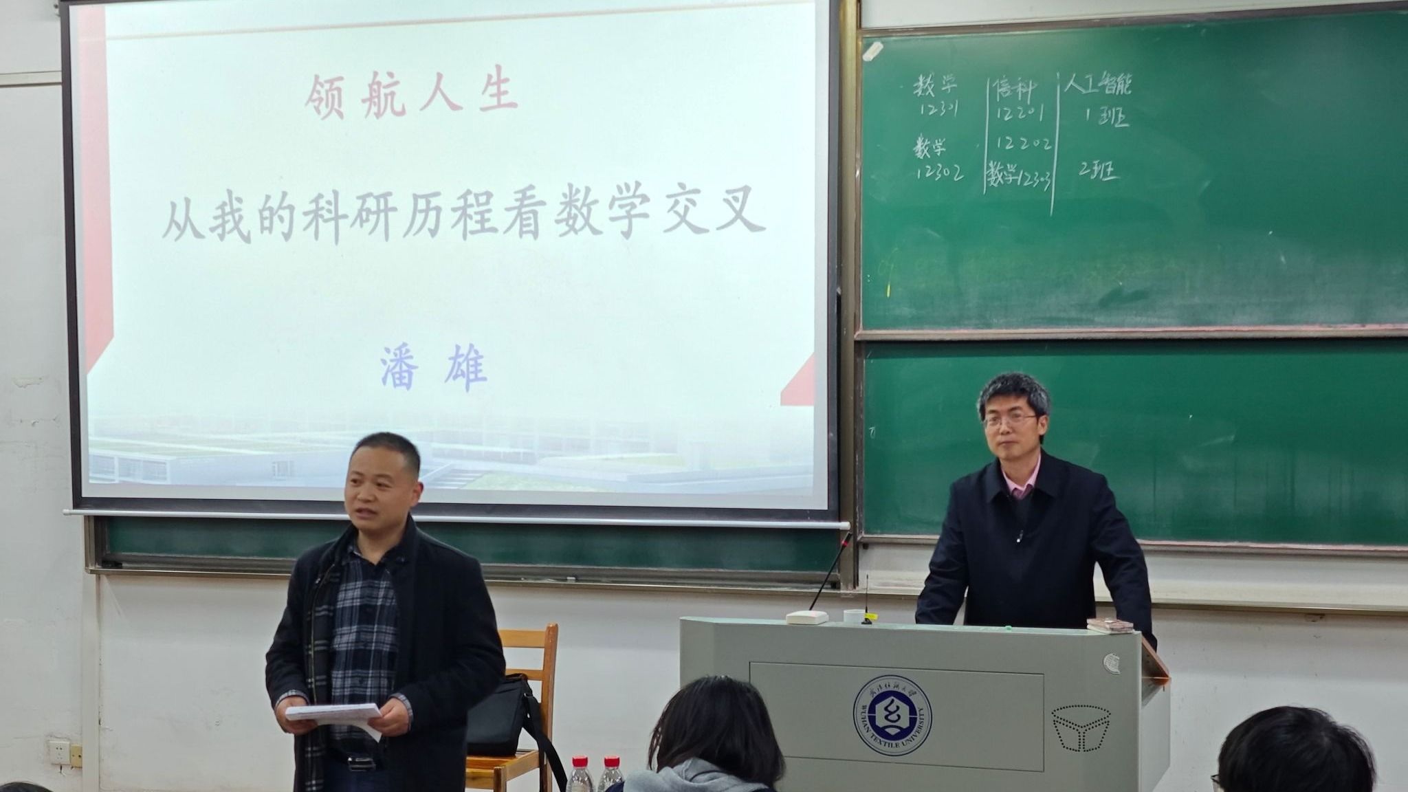 为了完善第二课堂供给侧建设,开阔学生视野,促进复合型人才的培养,3月17日,学院22级班主任周志刚教授邀请潘雄教授为学生讲学。学院党委副书记陈国鹏主持,22级、23级全体数学专业本科生,以及年级辅导员聆听讲座。