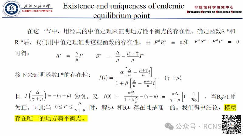 黄文丽 :这次汇报了《SIR epidemic model with Mittag-Leffler fractional derivative》。本文讨论了带时滞的Atangana-Baleanu Caputo分数阶导数描述的SIR流行病模型。理论效应和非奇异核构成了Atangana-Baleanu分数阶导数的两个特征,并解释了近年来它在模拟生物现象方面的出现。讨论了所有与分数阶导数阶数密切相关的解的正性;还对解的存在性和唯一性进行了详细的研究。在得到平衡点和再生数后,用Lyapunov直接法讨论了系统的全局稳定性分析。最后提出了同伦摄动法在SIR流行病模型求解中的可能应用。通过在同伦摄动方法中考虑更多的迭代来扩展现有的工作将有助于改进本文。