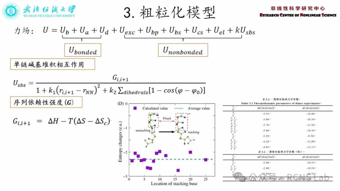 袁洁:本次汇报了毕业论文的研究内容。针对以前开发的一个DNA粗粒化模型有进一步的发展,增加了序列效应依赖的单链内相邻碱基之间的堆积相互作用,以预测单链DNA结构及其柔性中的序列效应。为了验证该模型,针对不同长度(8-100nt)的单链Poly(dA)和Poly(dT),利用该模型预测了其在不同离子条件下的构象变化,并计算回转半径随序列长度及离子浓度的变化关系。还进一步利用该模型研究了序列及长度、离子浓度等对单链DNA的持久长度的影响。