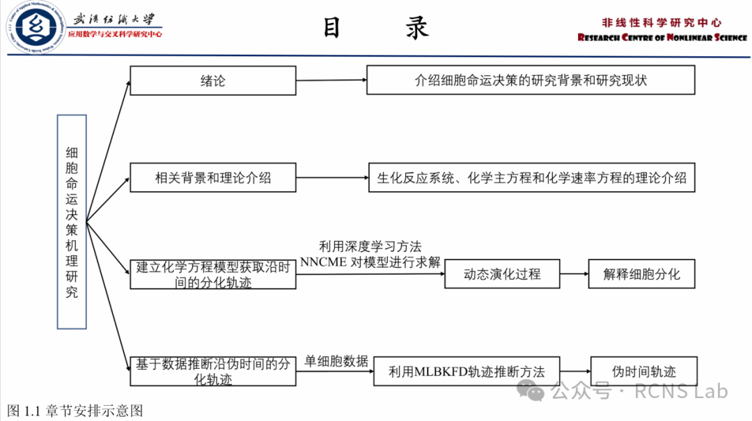 韩长锋:本次汇报了毕业论文的研究内容,如下:细胞命运决定是胚胎发育和多细胞生物形成的关键过程,研究细胞命运决定的机制对理解细胞内部调控至关重要。细胞增殖,分化和重编程等细胞过程由复杂的基因调控程序控制,但细胞通过整合各种信号并执行基因调控指令做出自己的命运决定。本研究旨在深入探究细胞命运决策的内在机制,特别是影响基因表达量变化的关键因素。与传统的细胞命运决策研究路线不同,本文拟采用模型与数据相结合的方法,综合深度学习和化学主方程等数学计算机方法,对细胞命运决策过程进行了系统的分析。