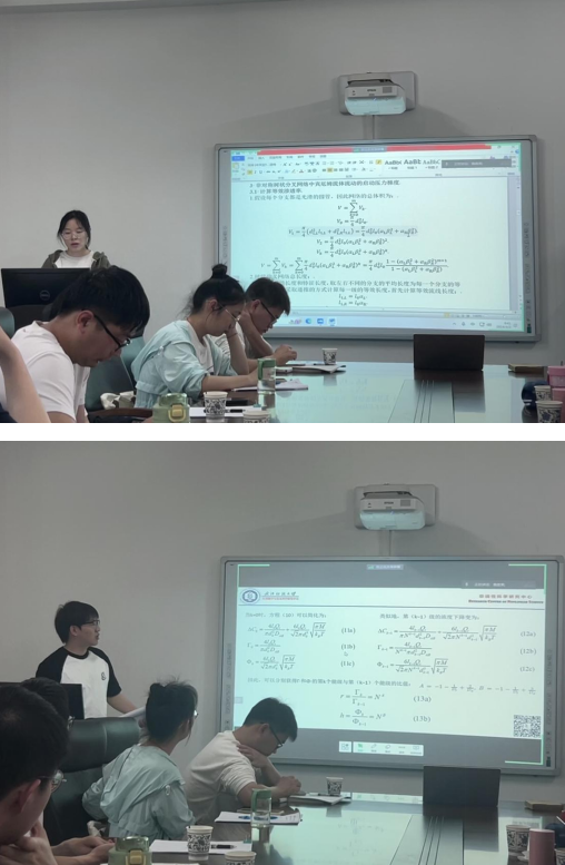应用数学与交叉威廉英国中心数学与纤维材料团队在2024年4月9日上午9:00于崇真楼3028教室进行每周小组组会,小组全体成员和各位导师共同参加。在这次组会上,由研二研一五名学生分别汇报自己的研究进展,然后老师与同学们对汇报内容进行学术探讨,并对存在的问题给出相应的指导和建议。