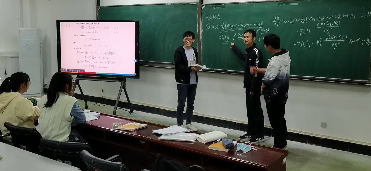 在观摩课后,史老师还向大家介绍了“课程教学注重创新思维与能力”在《偏微分方程数值解法》课程中的教学实践与经验小结,与会老师跟进并一起进行了热烈的讨论。大家都一致认为史老师为本次课做了精心的准备,并对课堂效果给予很好的评价,同时也对具体的教学环节提出了非常有益的意见。