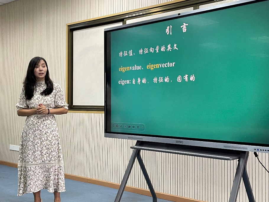 陈老师讲授的内容是线性代数的《特征值与特征向量》,她运用图文并茂、辅助动画演示的多媒体课件,从课前复习、引言到本节内容,环环相克,还介绍了本节内容中涉及到相关数学家的人物简介。陈老师上课过程中课堂气氛活跃,授课极富感染力,充分调动了学生的主动性,激发了学生的学习兴趣,教学效果很好。
