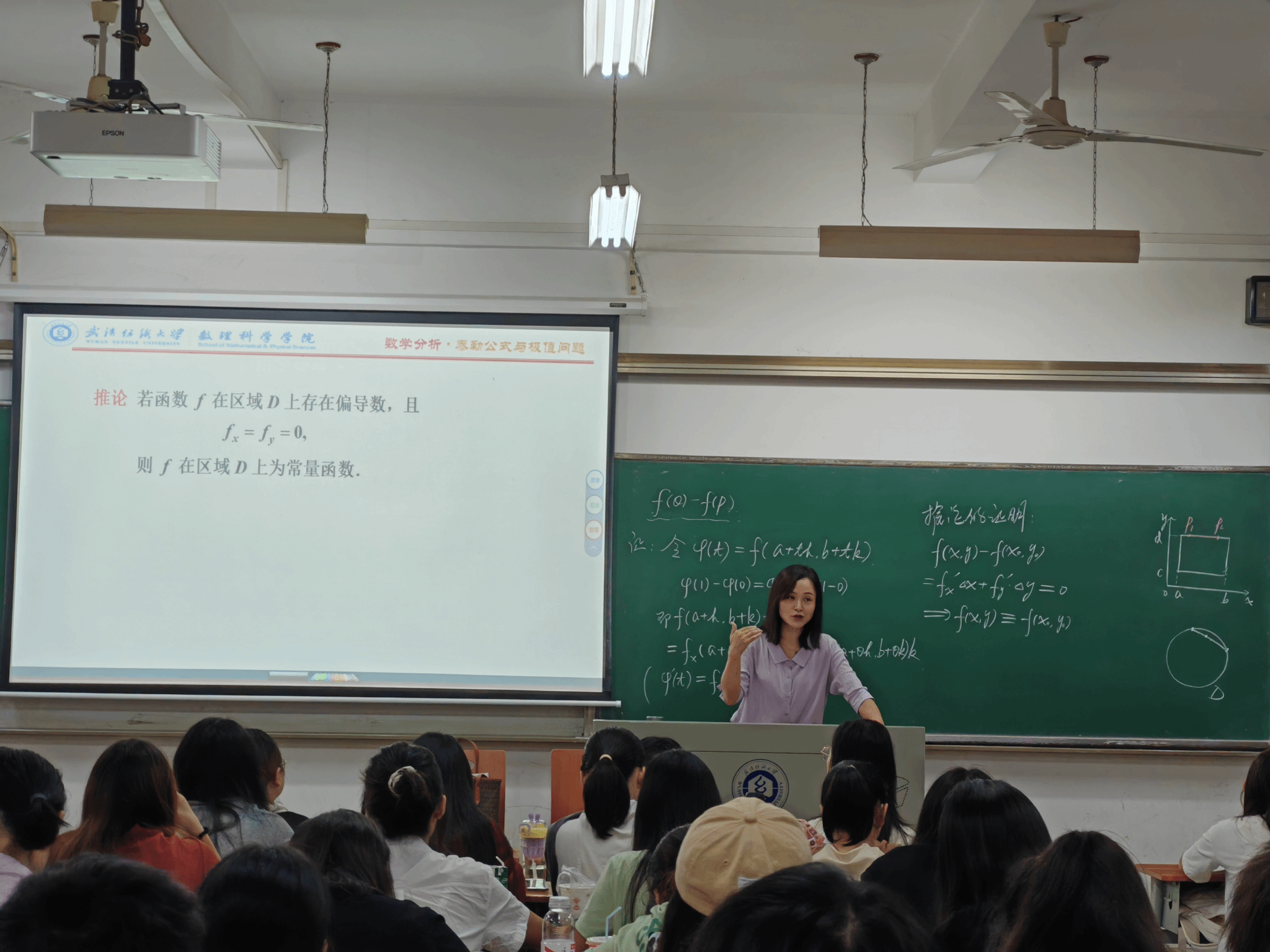 信息与计算科学系董敏老师讲授的是《数学分析Ⅲ》中的“中值定理和泰勒公式”。董老师重点讲解了中值定理和泰勒公式的理论背景及其应用实例,通过直观的例子和生动的教学手段帮助学生很好地理解复杂的数学概念,大大提高了学生的学习兴趣和理解能力。教学过程中,董敏老师语言生动、讲解细致、层层递进、循循善诱,充分体现以学生为中心的教学设计理念。示范观摩课结束后,现场老师对董敏老师的示范课给予高度赞扬,并与董老师进行充分交流,请教课程思政的元素挖掘与融入方法。