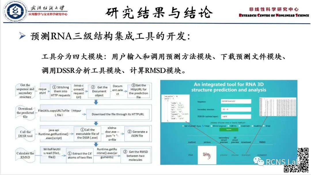 (1)为了更好地对现有的RNA三级结构预测方法进行整合与分析,我们将七种具有友好用户使用界面的预测方法(3dRNA,RNAComposer,MC-Fold/MC-Sym,Vfold,SimRNA,iFold,FARFAR2)和DSSR结构分析程序集成为一个新的RNA三级结构预测工具。