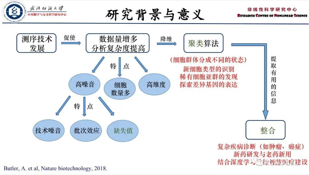 曹文洁:高通量的单细胞转录组测序技术能够以单细胞分辨率表征转录图谱,更好地揭示未知生物的多样性。然而,由于RNA转录组的数量少、基因表达模式的随机性、细胞的低捕获和低测序效率产生大量的技术和生物噪音,导致scRNA-seq具有高维度、稀疏性、具有大量缺失值以及受批次效应影响的特点。正是scRNA-seq数据中存在的大量缺失值,掩盖了基因间的关系,阻碍了下游分析。因此,对于scRNA-seq数据缺失值的插补,细胞类型和巨大细胞数量的精确快速分类仍是一项巨大挑战。基于生物数据,对其缺失值插补与分类进行研究,主要工作包含如下几方面:1、对单细胞数据缺失值插补方法进行综述研究。通过算法原理与优缺点的比较和分析,为针对特定问题与数据在插补方法的选择上提供建议,对数据的下游功能分析具有基础性研究意义。然后,针对数据稀疏、存在大量缺失值的问题,提出了一种基于多个编码解码器和注意力网络的深度神经网络模型(AMEDNN),通过实验验证了该模型的有效性。2、基于生物序列数据分类算法的研究。针对RNN存在的记忆能力不足以及梯度反向传播困难等问题提出一种新的算法SS-RNN。3、针对scRNA-seq数据分类提出了六种基于集成学习的分类模型,EL-KNN、EL-LDA、EL-SVM、EL-NB、EL-DT和EL-HW。4、基于图注意力网络的单细胞转录组测序数据缺失值插补与聚类算法scGATv2。该框架通过三种不同的自动编码器的迭代,来挖掘细胞间的潜在关系。本工作主要创新之处在于融入图注意力变分自动编码器,不仅能保持原本的拓扑结构,还可以通过注意力机制自动的学习和优化细胞间的连接关系。