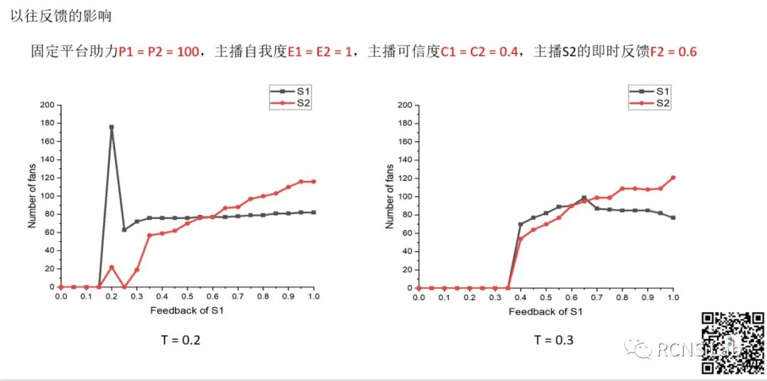赖杨帆:汇报主要是最近做的相关实验,研究主播PK中查找PK优胜主播的特征。特征有平台助力(以主播节点权重反映)、主播可信度(观众是否会受到主播影响改变自己的观点值)、主播自我程度(主播是否会改变自己的观点值)、即时反馈(影响主播的初始观点值以及主播观点更新机制)。对查找PK研究进行完善后,会进行随机PK的研究,随机PK会改变网络结构与网络中所有节点权重,还会引入处于竞争状态的赞助商的影响与产品质量的影响。