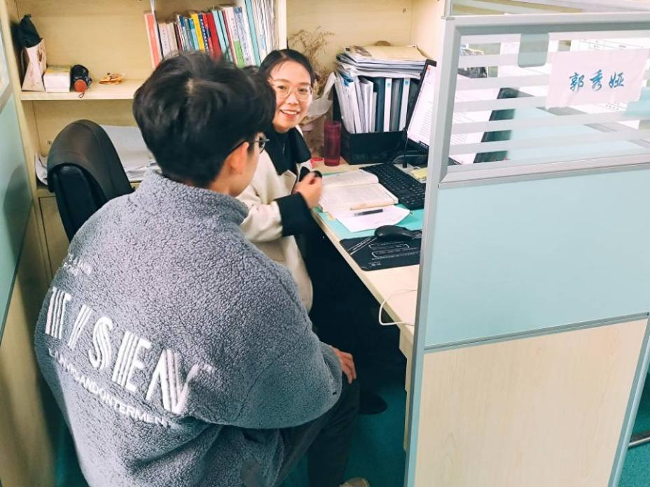 在年龄上,郭秀娅老师作为90后的年轻教师,与同学年龄相仿,就像同学们的知心大姐姐。郭秀娅老师对学生也十分关心,不仅会在学习上与同学们同频道进行答疑,在生活中也和学生们相处的十分融洽和谐。郭秀娅老师说道:“和学生们相处,我总是感到轻松快乐,因为我也很理解这群00后的孩子们,在课堂上我和学生之间没有传统的拘束,在教授知识的过程中,和同学们的互动也十分快乐,我希望孩子们都能在快乐中学习。”在对线性代数和高等数学等公共课进行授课时,即便身处大教室中授课,郭老师也能关注到大多数学生,和学生之间保持着良好的互动。每当班上的同学有问题向老师提出时,郭老师都会耐心的解答。“教子教女,辛勤半辈,与老师亦师亦友”,这是同学们对老师真挚的评价。